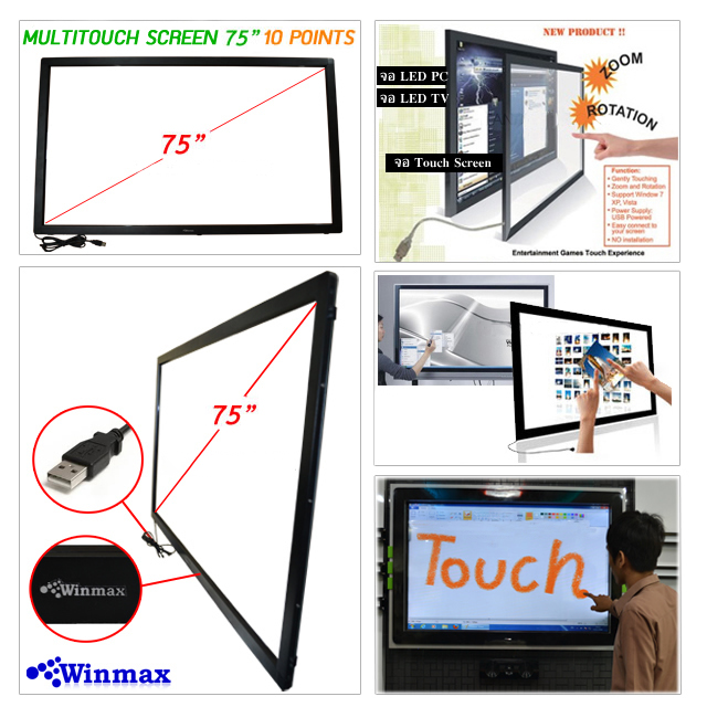 จอทัชสกรีน มัลติทัช touch screen display multi touch แบบเฟรม ขนาด 65 นิ้ว สัมผัสพร้อมกัน 10 จุด ไม่ต้องลงไดร์ฟเวอร์