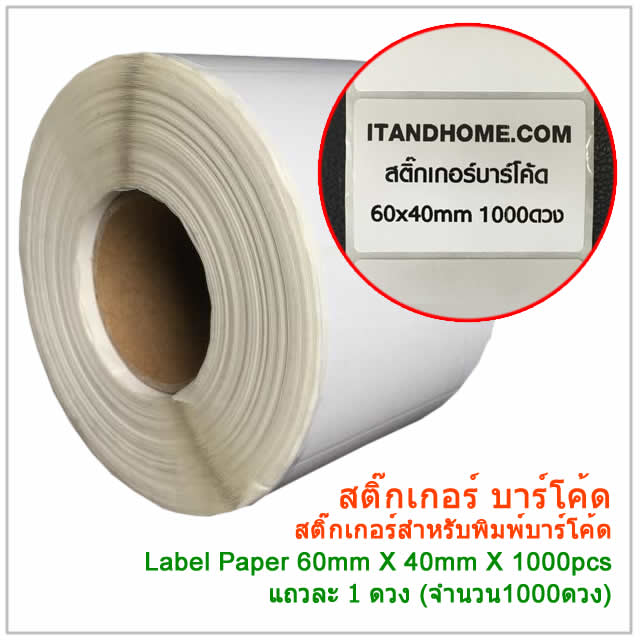 บาร์โค้ดสติ๊กเกอร์ Sitcker Barcode 60x40มม. 1000ดวง ความกว้างหน้ากระดาษ 65 มม.