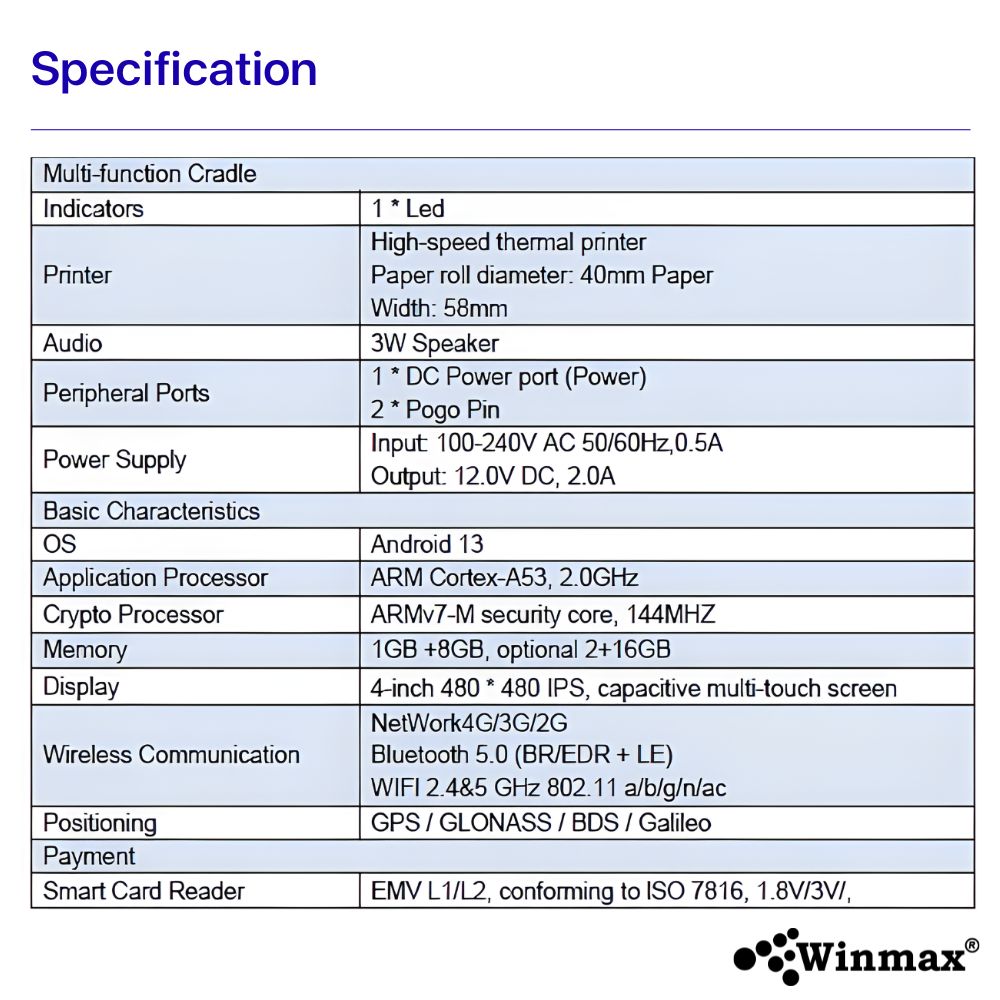 POS (Point of Sale) system with dynamic QR code payment – Winmax Z50 model