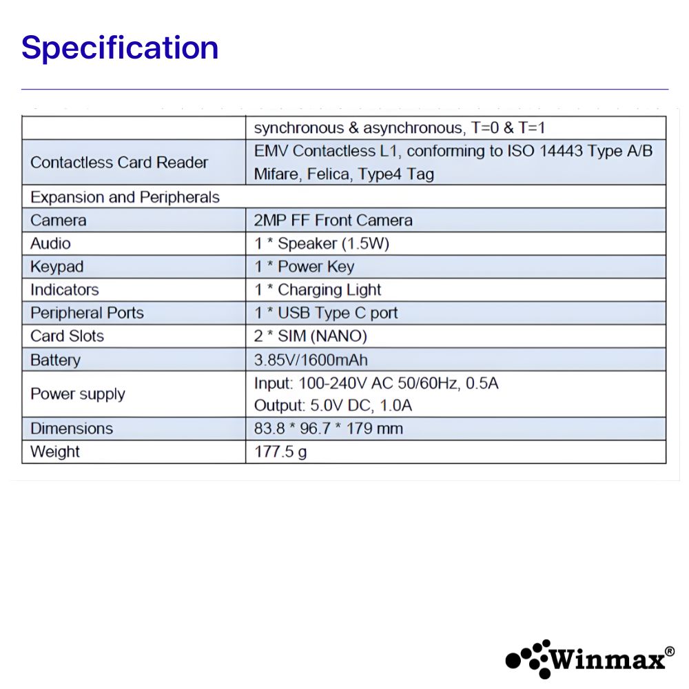 POS เครื่องรับชำระเงินด้วย QR Code แบบไดนามิก-Winmax รุ่น Z50